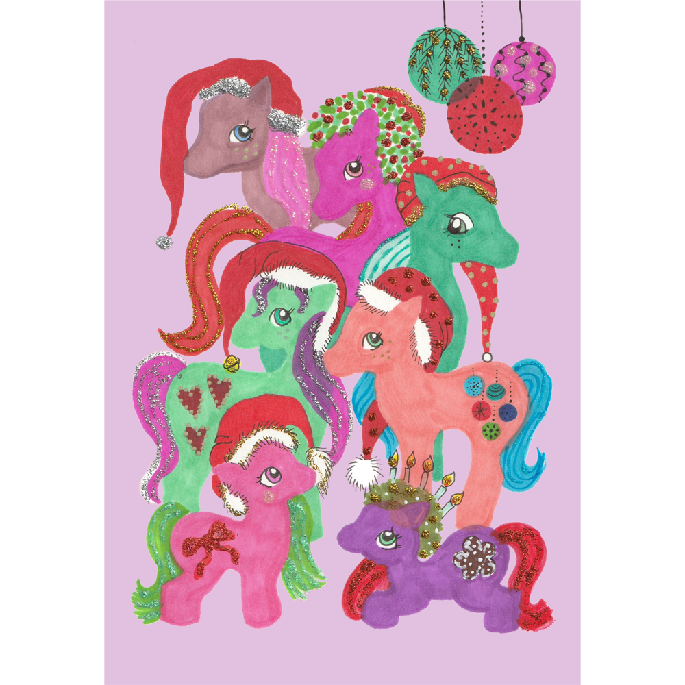 No nyt on suloinen joulukortti! Jouluponit-kortti hurmaa pastellein ja glitterein perheen pienimmänkin jouluttajan.